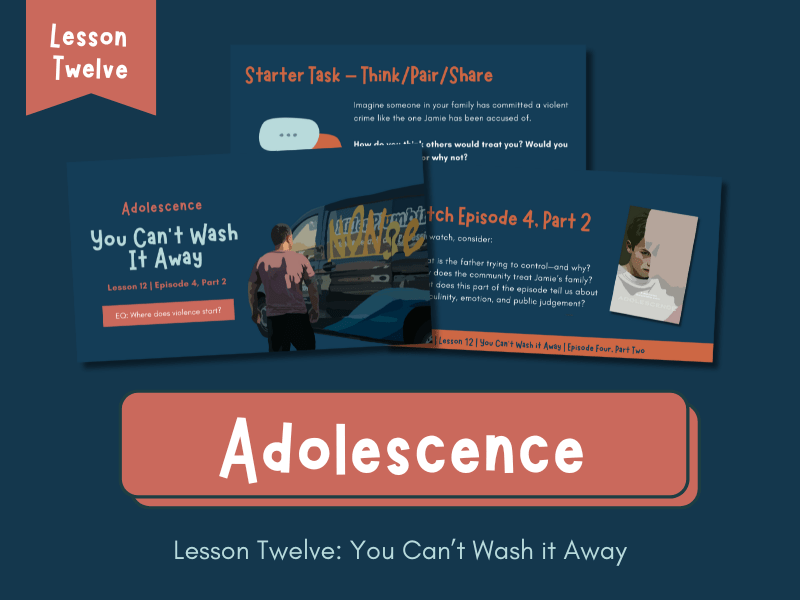 In this emotionally complex KS4 PSHE lesson, students reflect on the fallout of violence from the perspective of the perpetrator’s family. Based on Episode 4, Part 2 of the Netflix series Adolescence, the lesson follows Jamie’s father as he struggles to cope with grief, shame, and public harassment following his son’s arrest.