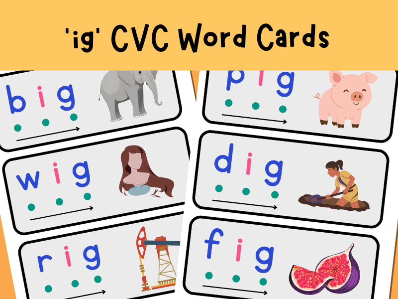These “-ig” word family cards are perfect for phonics sessions, interventions, literacy centres and home learning. They make it easy for children to spot patterns, hear rhyme, and build confidence with CVC words in a fun, visual, and hands-on way.